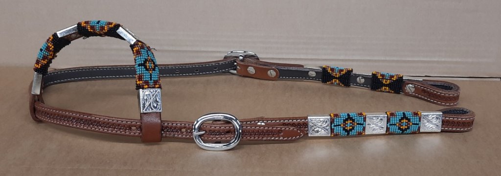 One ear headstall with FLAT EARS with BEADS and SILVER PARTS